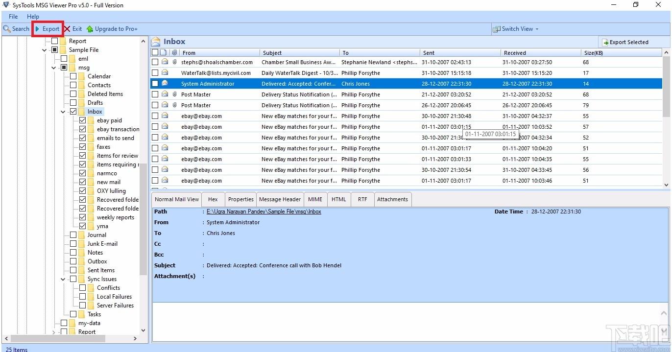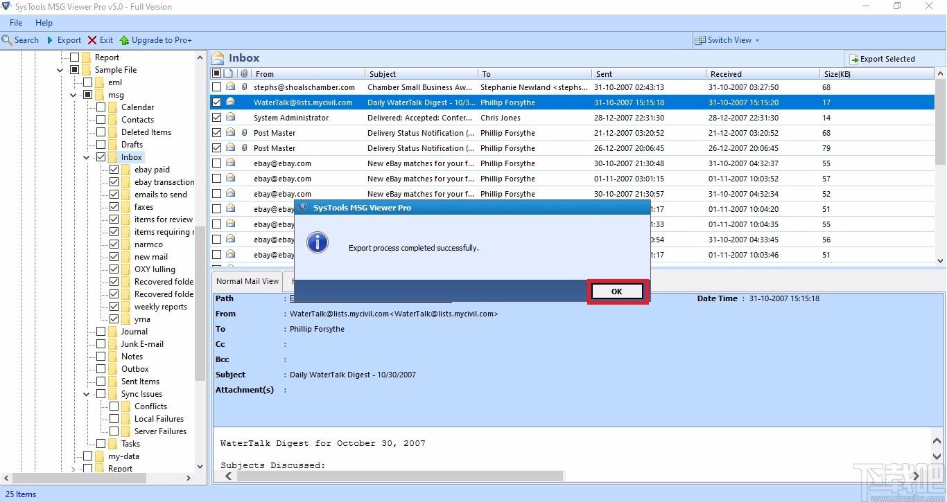 现在,您可以在使用MSGViewerPro软件之后验证导出的项目。