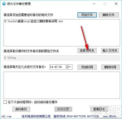 2、点击选择文件夹,选择备份操作时文件备份到的固定文件夹